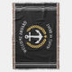 Keep warm and cosy wrapped in this nautical themed throw blanket with your personalised welcome aboard greeting and your boat name, family name or other desired text. It features a custom designed vintage boat anchor framed in gold style laurel leaves and star to complete the design. Comes in elegant black or easily change the primary colour to match you current decor or theme.