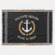Welcome Aboard Boat Name Anchor Gold Laurel Black Throw Blanket