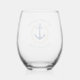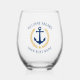 Welcome Aboard Boat Name Anchor Gold Laurel Blue Stemless Wine Glass