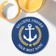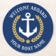 Welcome Aboard Boat Name Anchor Gold Laurel Navy Round Paper Coaster