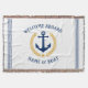 Keep warm and cosy wrapped in this nautical themed throw blanket with your personalised welcome aboard greeting and your boat name, family name or other desired text. It features a custom designed vintage boat anchor framed in gold style laurel leaves and star to complete the design. Comes in white or easily change the primary colour to match you current decor or theme.
