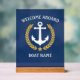 Welcome Aboard Boat Name Anchor Laurel Navy Blue Acrylic Sign