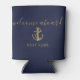 Welcome Aboard Boat Name Navy Blue And Gold Can Cooler