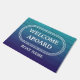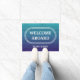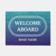 Welcome guests to your boat with this stylish faux wood nautical welcome mat featuring the roped words, Welcome Aboard, followed by your boat's name. Text is fully customisable. Shown is the small doormat. From Heard_.