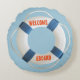 Welcome Aboard Life Ring Nautical Round Pillow. White marine nautical lifering with fully customisable orange texts "Welcome" and "Aboard" on both sides of this cool nautical pillow for your sailing friends. This unique personal nautical marine pillow is fully customisable, add your yacht or boat name or personal text(s) and/ or images!