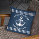 The design of the "Welcome Aboard" Waterfront Cojines features a simple, elegant design with white and navy blue coastal style and anchor logo. Customize the text of the personalized boat with the name of your ship along with its location, city and state. Gift Ideal for boat owners with nautical theme. Don't think about it and Buy this Nice Nautical Cushion Design for Boat.