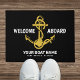 Welcome Aboard Nautical Black Gold Boat Name Doormat