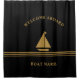 Welcome Aboard Nautical Black Gold Boat Name Text Shower Curtain