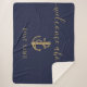Welcome Aboard Nautical Boat Name Navy Blue Gold Sherpa Blanket