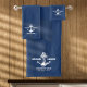 These personalised bath towels feature a classic nautical anchor design on a deep navy blue background. Customise the towels with a name or short message to create a unique gift for yourself or someone special. The soft, absorbent cotton will make your bath time a relaxing experience.