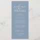 Make a heartfelt first impression at your wedding reception with this sophisticated "Welcome & Thanks" place card—designed to rest beautifully on each guest’s plate, in dusty blue theme. Featuring graceful script typography and a timeless layout, this elegant card warmly greets your loved ones while expressing gratitude for sharing your special day. Ideal as a dual-purpose place card & welcome note—combine sentiment and function without cluttering your tables-cape. Designed for couples who value refined details, this card complements modern and luxe wedding themes. Print on premium card stock for a luxurious finish that guests will cherish (or even keep as a sweet keepsake!). Because love is best served with gratitude.