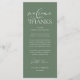 Make a heartfelt first impression at your wedding reception with this sophisticated "Welcome & Thanks" place card—designed to rest beautifully on each guest’s plate, in rustic sage green theme. Featuring graceful script typography and a timeless layout, this elegant card warmly greets your loved ones while expressing gratitude for sharing your special day. Ideal as a dual-purpose place card & welcome note—combine sentiment and function without cluttering your tables-cape. Designed for couples who value refined details, this card complements modern and luxe wedding themes. Print on premium card stock for a luxurious finish that guests will cherish (or even keep as a sweet keepsake!). Because love is best served with gratitude.