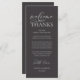Make a heartfelt first impression at your wedding reception with this sophisticated "Welcome & Thanks" place card—designed to rest beautifully on each guest’s plate, in charcoal grey theme. Featuring graceful script typography and a timeless layout, this elegant card warmly greets your loved ones while expressing gratitude for sharing your special day. Ideal as a dual-purpose place card & welcome note—combine sentiment and function without cluttering your tables-cape. Designed for couples who value refined details, this card complements modern and luxe wedding themes. Print on premium card stock for a luxurious finish that guests will cherish (or even keep as a sweet keepsake!). Because love is best served with gratitude.