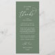 Make a heartfelt first impression at your wedding reception with this sophisticated "Welcome & Thanks" place card—designed to rest beautifully on each guest’s plate in sage green theme. Featuring graceful script typography and a timeless layout, this elegant card warmly greets your loved ones while expressing gratitude for sharing your special day. Ideal as a dual-purpose place card & welcome note—combine sentiment and function without cluttering your tables-cape. Designed for couples who value refined details, this card complements modern and luxe wedding themes. Print on premium card stock for a luxurious finish that guests will cherish (or even keep as a sweet keepsake!). Because love is best served with gratitude.