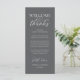 Make a heartfelt first impression at your wedding reception with this sophisticated "Welcome & Thanks" place card—designed to rest beautifully on each guest’s plate in classy dark grey theme. Featuring graceful script typography and a timeless layout, this elegant card warmly greets your loved ones while expressing gratitude for sharing your special day. Ideal as a dual-purpose place card & welcome note—combine sentiment and function without cluttering your tables-cape. Designed for couples who value refined details, this card complements modern and luxe wedding themes. Print on premium card stock for a luxurious finish that guests will cherish (or even keep as a sweet keepsake!). Because love is best served with gratitude.