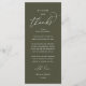 Make a heartfelt first impression at your wedding reception with this sophisticated "Welcome & Thanks" place card—designed to rest beautifully on each guest’s plate in olive green theme. Featuring graceful script typography and a timeless layout, this elegant card warmly greets your loved ones while expressing gratitude for sharing your special day. Ideal as a dual-purpose place card & welcome note—combine sentiment and function without cluttering your tables-cape. Designed for couples who value refined details, this card complements modern and luxe wedding themes. Print on premium card stock for a luxurious finish that guests will cherish (or even keep as a sweet keepsake!). Because love is best served with gratitude.