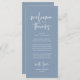 Share the love and show your appreciation to your guests, when they sit down at their seat and read this personalised charming dusty blue theme thank you place card (Welcome and thanks). It's a wonderful way to kick off your special day celebration! This card is sure to set the tone for an unforgettable event. The thank you card features modern design script theme, adding a touch of timeless elegance to your celebration. Designed by TeeshaDerrick