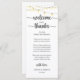 Make a heartfelt first impression at your modern wedding reception with this sophisticated "Welcome & Thanks" place card - designed to rest beautifully on each guest’s plate, in rustic string lights, black and white theme. Featuring graceful script typography and a timeless layout, this elegant card warmly greets your loved ones while expressing gratitude for sharing your special day. Ideal as a dual-purpose place card & welcome note—combine sentiment and function without cluttering your tables-cape. Designed for couples who value refined details, this card complements modern and luxe wedding themes. Print on premium card stock for a luxurious finish that guests will cherish (or even keep as a sweet keepsake!). Because love is best served with gratitude.
