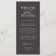 Introducing the perfect minimalist touch to your wedding reception - our elegant romantic charcoal grey Wedding Reception Thank You Place Setting Cards, with card title "Welcome and Thanks" ! Designed to express your heartfelt appreciation for each guest's presence on your special day, these cards are the ideal way to add a personal touch to your dinner tables. These place setting cards are easy to use - simply place one on top of each dinner card to create a beautiful and thoughtful presentation. Not only will they make your guests feel appreciated, but they will also add a touch of sophistication to your reception.