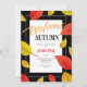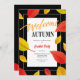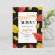 An autumn invitation with a modern design featuring falling leaves in red and gold against a black background. The card is easy to customise with your wording, font and font colour. Not exactly what you're looking for? All our products can be custom designed to meet your needs at no extra charge. Simply contact us at heartfelthelper@gmail.com. Coordinating products available at your request at no additional charge.