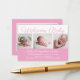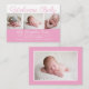 Welcome baby. A classic baby girl photo birth announcement in pretty pink with beautiful cursive typography above your sweet newborn photograph collage. Customise the back of this small note card with your favourite photo of your new infant for a lovely card.