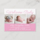 Welcome Baby Girl Photo Pretty Pink Cursive Script Enclosure Card