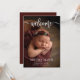 Elegantly sweet birth announcements feature your favourite newborn photo in full bleed, baby's name, birth stats and your names in white (or any colour and font you want) and the word welcome at the top (can be removed.) Change the background colour to any colour that suits your photo. You can add more photos on the back, too!