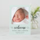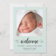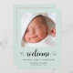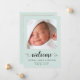 A simple pastel mint green gender-neutral birth announcement. The front features your newborn's photo, name, arrival date and birth stats, and "welcome" in a stylish script with heart swashes. On the reverse, add an additional photo, parent and sibling names, and a thank you or other message.