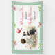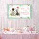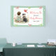 A sweet personalized welcome to our baby shower banner. Graphics include a sweet little baby girl sitting next to her puppy dog. The colors used are sage green and pink with pretty flowers and butterflies.