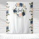 This design features a navy blue and blush pink floral watercolor shower backdrop that will be perfect for some photo ops.