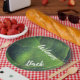 Add a personal touch to your welcome back breakfast or lunch with these paper plates featuring a bright green leaf and the words "Welcome Back". The green leaf photo captures the detail of a single leaf with lines moving diagonally across the party plate. The words "Welcome Back" appear with the diagonal lines of the leaf and can easily be customised to suit your needs.