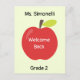 Welcome Back Red Apple with Teacher's Name Grade Postcard