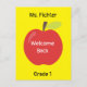 Welcome Back Red Apple with Teacher's Name Grade Postcard