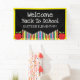 Welcome your students back to school with this bold and colorful banner. The design is accented with red apples and colored pencils. Use for a general banner for the school or customize to a specific grade.