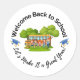 Featuring a colourful schoolyard scene with students, a school bus, and the uplifting message: “Welcome Back to School – Let’s Make It a Great Year!”