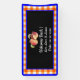 Cute, customisable banner with a three custom text templates inside a rectangle, orange plaid background, and blue border, featuring two hand drawn and digitally design, foil textured, whimsical, reddish apples.