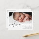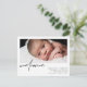 Modern Photo Baby Birth Announcement Postcard. Design featuring welcome script, single photo of the baby, birth stats, date and a name on the front. Personalise with your thank you message on the back.
