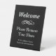 Welcome Black and White Please Remove Shoes Pedestal Sign
