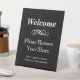 Custom card sign to display during home showings features a classy black and white custom design: "Welcome, please remove your shoes" with custom text for guest Wi-Fi information.