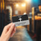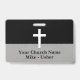 Welcome your visitors with our Church name black-and-white simple white cross personalised name tag badge. Perfect for creating a warm, connected church community while helping everyone feel at home! Keep design as is or replace with your branding/logo.