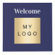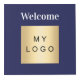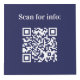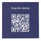 For hotel rooms, restaurant tables, rental properties. Personalise and add your business logo, and space for two QR codes. Navy blue background, white text.