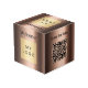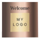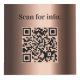For hotel rooms, restaurant tables, rental properties. Personalise and add your business logo, and space for two QR codes. A faux bronze looking background, black text.