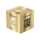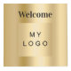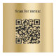 For hotel rooms, restaurant tables, rental properties.  Personalise and add your business logo, and space for two QR codes.  A faux gold looking background, black text.