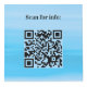 For hotel rooms, restaurant tables, rental properties. Personalise and add your business logo, and space for two QR codes. Blue ocean as background, Black text.