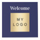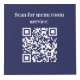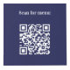 For hotel rooms, restaurant tables, rental properties. Personalise and add your business logo, and space for 4 QR codes. Navy blue background, white text.