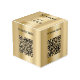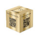For hotel rooms, restaurant tables, rental properties.  Personalise and add your business logo, and space for 4 QR codes.  A faux gold looking background, black text.