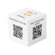 For hotel rooms, restaurant tables, rental properties. Personalise and add your business logo, and space for 4 QR codes. White background, black text. You can add your brand colour in the design tool.