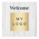 For hotel rooms, restaurant tables, rental cabins. Personalise and add your business logo, and space for 4 QR codes. White, rustic wood print as background, black text.
