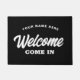 Welcome come in custom black doormat for shop or home. Add your own personalised business name, company name, family name etc. Stylish script typography design. Custom rug for entry way, house door opening, office, practice, store entrance and other places.