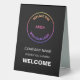 A stylish way to welcome your delegates or visitors to your company event or work place. Replace the sample placeholder image with your company logo, and easily personalise your company name and welcome message. Both sides will update simultaneously. You can also change the font styles and colours if you wish via the Click to Customise Further option as well as the black background. However If you do so please remember to make the changes to both sides as this doesn’t happen simultaneously like when you change the words and logo.